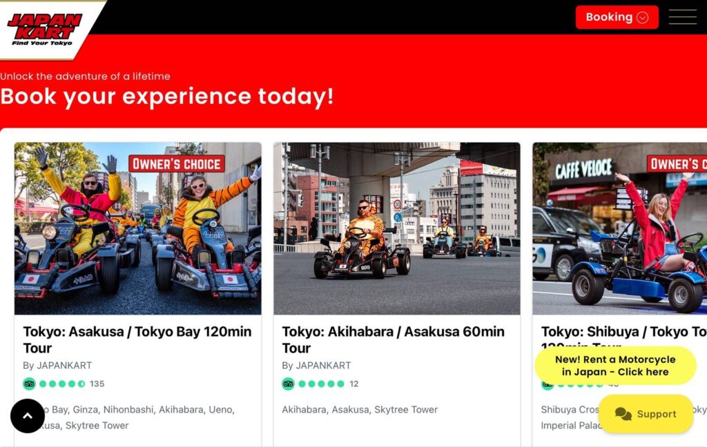 公道を走るゴーカート体験を提供しているJAPANKARTさん。私も都会で楽しそうなJAPANKARTのお客様たちを見かけたことがあります。ゲーム大国日本でゲームのような体験ができるなんてとても素敵な体験だなと思いました。